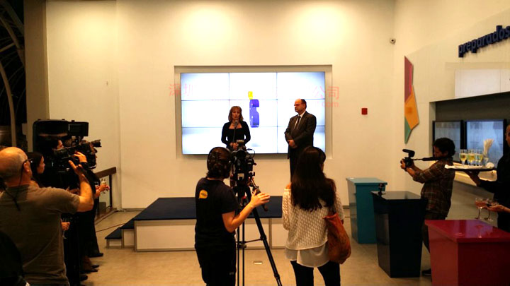 項目介紹:產(chǎn)品采用優(yōu)色液晶拼接大屏,2X2壁掛是安裝,5.3mm超窄邊拼縫。