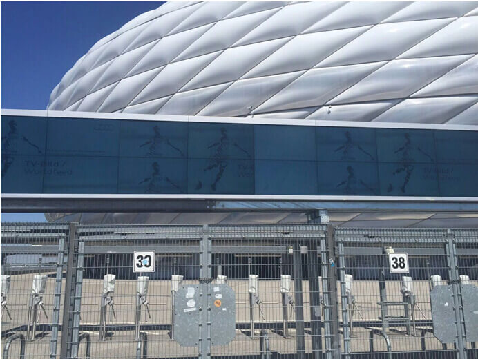 2016年,深圳優(yōu)色專顯科技有限公司的高清戶外液晶拼接單元,在經(jīng)過戶外風(fēng)吹日曬的整體測(cè)評(píng)后,以優(yōu)良的品質(zhì)贏得為這個(gè)被當(dāng)?shù)厝朔Q之為“橡皮艇”驕傲球場(chǎng)提供液晶拼接顯示單元,200余片戶外高清液晶拼接繞球場(chǎng)上方圍成一圈,讓球迷能全方位的感受球場(chǎng)賽事,不放過任何一個(gè)細(xì)節(jié),讓科技與足球融合,讓慕尼黑安聯(lián)球場(chǎng)大放異彩!