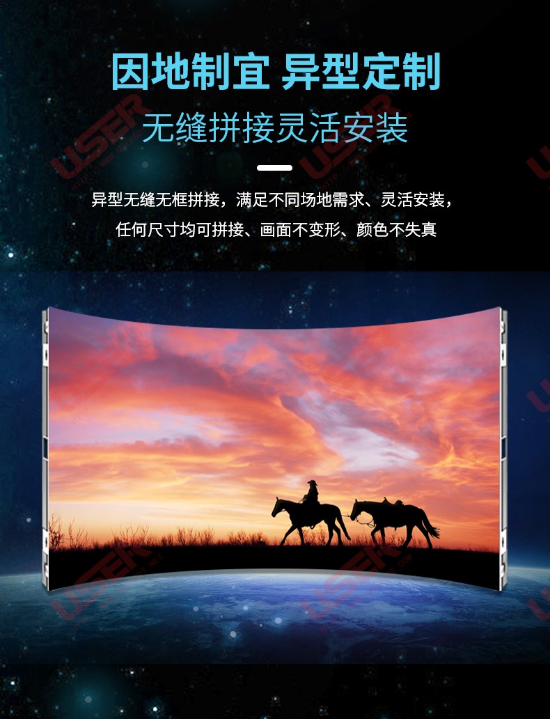 箱體可水平、垂直方向進行無縫拼接,有效減少視覺縫隙干擾,畫面顯示完整連貫。
