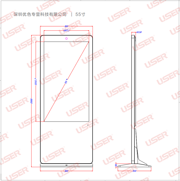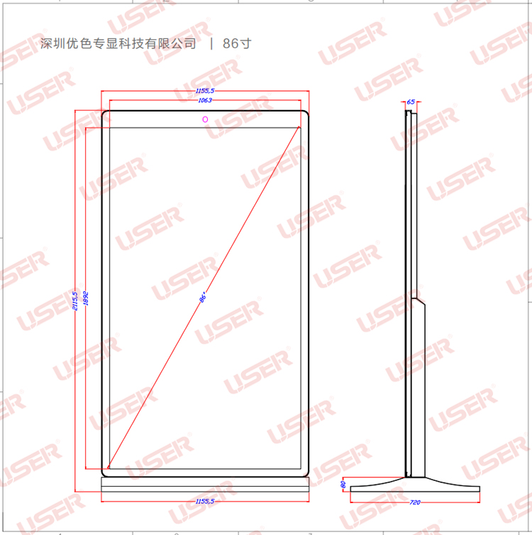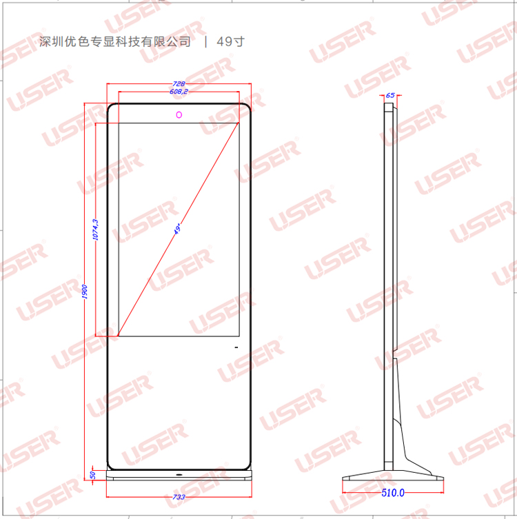 優(yōu)色專顯US-AD430PLS/US-AD460PLS/US-AD490PLS/US-AD550PLS/US-AD650PLS/US-AD860PLS仿蘋果款落地立式液晶廣告機產(chǎn)品圖片,參數(shù),尺寸。