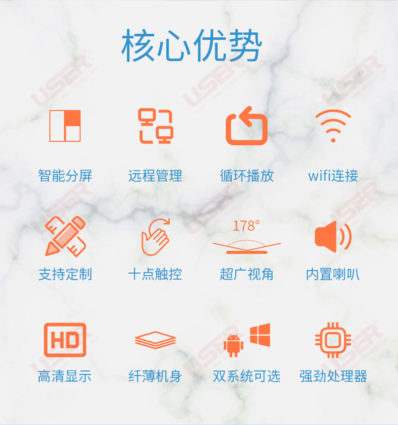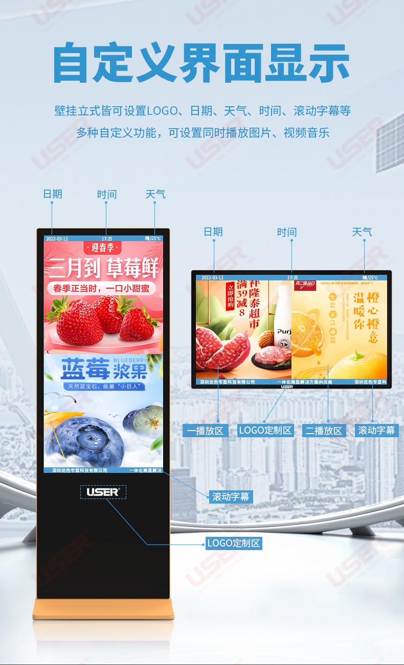 菜單產(chǎn)品中心Product center 液晶廣告機 壁掛式廣告機 落地立式廣告機 電梯超薄廣告機 車載廣告機 高亮廣告機 戶外廣告機 液晶拼接屏 專業(yè)液晶拼接屏 4K液晶拼接屏 廣告拼接屏 無縫液晶拼接屏 觸摸液晶拼接屏 LED顯示屏 觸控一體機 壁掛式觸控一體機 立式觸控一體機 斜面觸控一體機 智能家居觸控一體機 戶外觸控一體機 液晶電子白板 教育電子白板 會議電子白板 工控一體機 觸摸顯示器 紅外觸摸顯示器 電容觸摸顯示器 電阻觸摸顯示器 聲波觸摸顯示器 納米觸摸顯示器 液晶監(jiān)視器 專業(yè)級監(jiān)視器 4K監(jiān)視器 嵌入式監(jiān)視器 機架式監(jiān)視器 開放式監(jiān)視器 SDI監(jiān)視器 高亮監(jiān)視器 廣播級監(jiān)視器 工業(yè)顯示器 4K顯示器 機架式顯示器 開放式顯示器 醫(yī)療顯示器 KVM顯示器 指揮室顯示器 智慧校園產(chǎn)品 專業(yè)定制商顯 多屏廣告機 多功能觸控一體機 多功能廣告機 微信打印廣告機 魔鏡廣告機 透明廣告機 全息廣告機 條形屏廣告機 旋轉(zhuǎn)廣告機 裸眼3D廣告機 人工智能產(chǎn)品 顯示配套設(shè)備 拼接配套設(shè)備 廣告機播放盒 OPS播放盒 拼接支架 移動支架 相關(guān)軟件 吊頂支架 線材 木架 蜂窩箱 桌面底座 熱門產(chǎn)品 →優(yōu)色3.5mm超窄邊46寸液晶拼接屏→優(yōu)色49寸3.5mm超窄邊液晶拼接屏→優(yōu)色3.5mm超窄邊55寸液晶拼接屏 您的位置:首頁 → 公司產(chǎn)品 → 液晶廣告機 → 落地立式廣告機 50寸立式落地廣告機類別:落地立式廣告機 簡介:液晶尺寸 50英寸 液晶規(guī)格 全新原廠原包LED商用液晶面板 分 辨 率 1920*1080 顯示面積 1073.78*604mm 顯示比例 16:9 可視角度 89/89/89/89(左/右/上/下) 亮 度 350cd/m2 背光類型 ELED 響... 在線咨詢 返回列表 產(chǎn)品說明 相關(guān)產(chǎn)品 65寸落地立式廣告機 55寸立式廣告機 50寸立式落地廣告機 43寸立式落地廣告機 43寸46寸49寸55寸65寸86寸仿蘋果款立式廣告機 55寸超薄立式廣告機