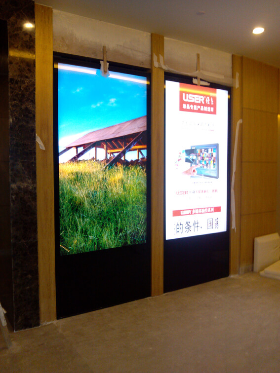 →優(yōu)色立式82寸液晶廣告機應(yīng)用廈門某集團大廈
