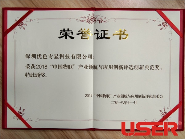 優(yōu)色專顯榮獲2018中國(guó)物聯(lián)網(wǎng)產(chǎn)業(yè)領(lǐng)航與應(yīng)用創(chuàng)新典范獎(jiǎng)