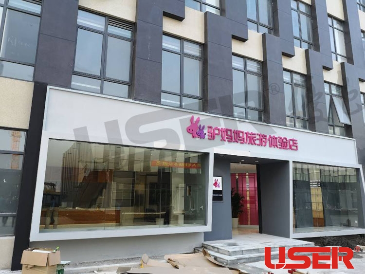 →上海驢媽媽旅游體驗店46寸3*3拼縫3.5mm液晶拼接屏項目