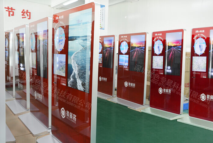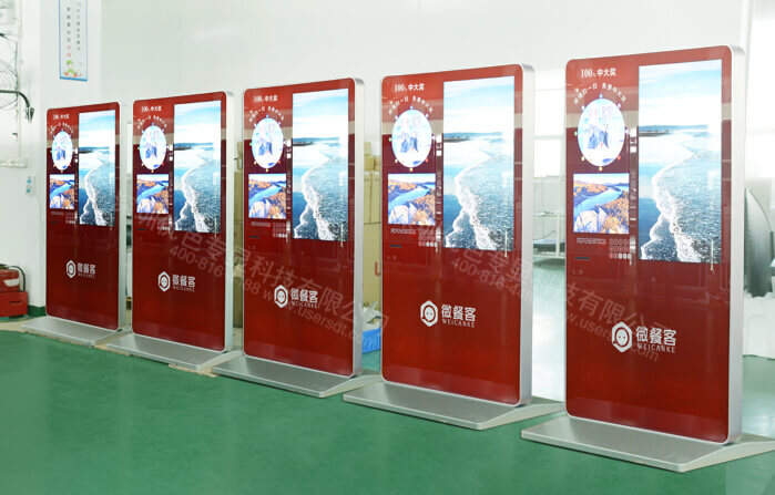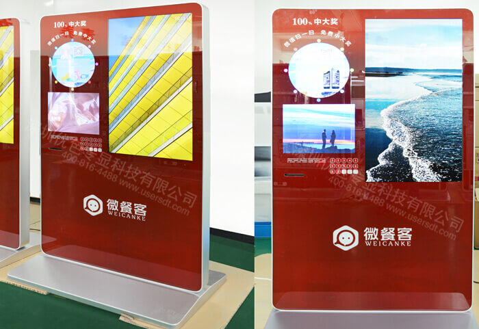 該產(chǎn)品為雙屏微信廣告促銷機:左右2個顯示屏。左側(cè)32寸、右側(cè)42寸。