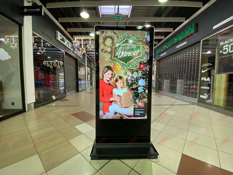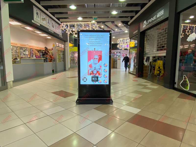 優(yōu)色專顯65寸雙面納米觸摸落地廣告機(jī)進(jìn)駐捷克某商場(chǎng)