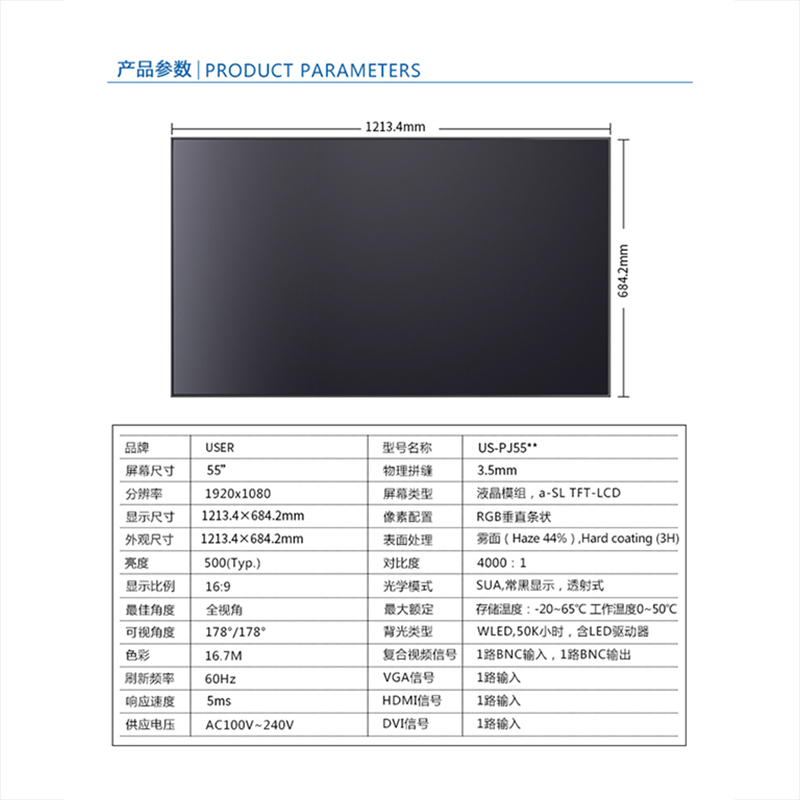 優(yōu)色3.5mm超窄邊55寸液晶拼接屏類別:專業(yè)液晶拼接屏