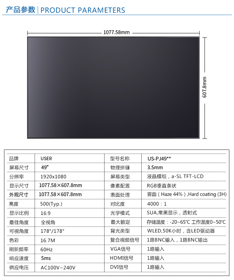 優(yōu)色49寸3.5mm超窄邊液晶拼接屏類別:專業(yè)液晶拼接屏